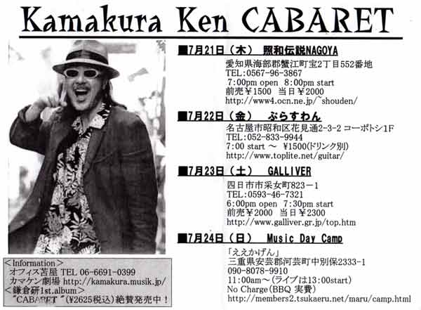 | 日時 | ミュージシャン | 内容 | チャージ | 備考 |